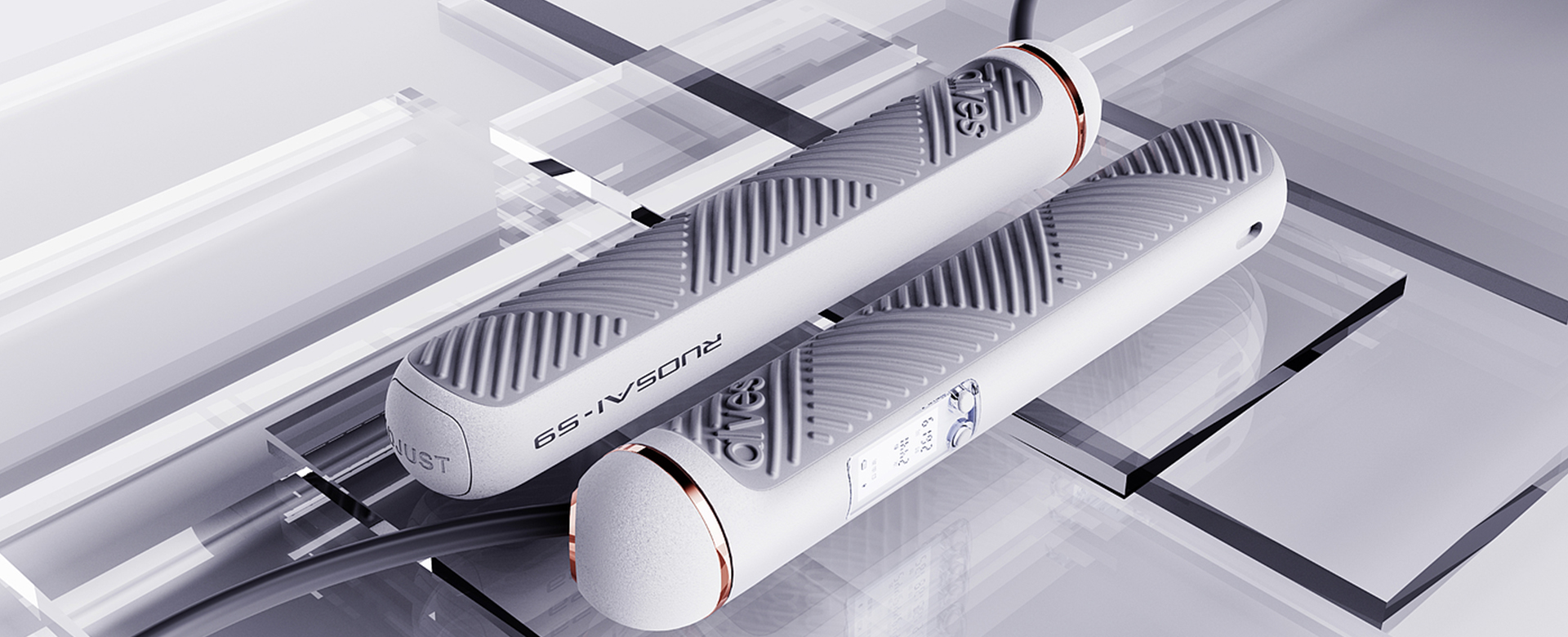 综合以上几个方面,这款智能跳绳的外观结构设计应该呈现出专业运动设备的外观,具有美观的外观、舒适的手柄和可观的计数器等。同时,还应该具有易用、易调和良好的建造质量,以满足用户的需求和期望。
